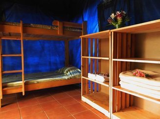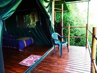 Con las comodidades de una habitación y la belleza de un camping de lujo. Tiendas con balcón, piso de madera teca y baño de bambú. Ubicadas en la zona alta cerca al Templo de Práctica.